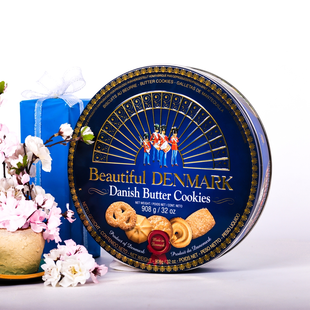- Bánh đựng trong hộp thiếc hình tròn, mầu sắc trang nhã tạo nên sự sang trọng khi làm quà tặng, chất lượng thơm ngon, hình dáng hấp dẫn. Khách hàng hướng tới là những người mong muốn được thưởng thức dòng bánh quy bơ Đan Mạch chất lượng thượng hạng.