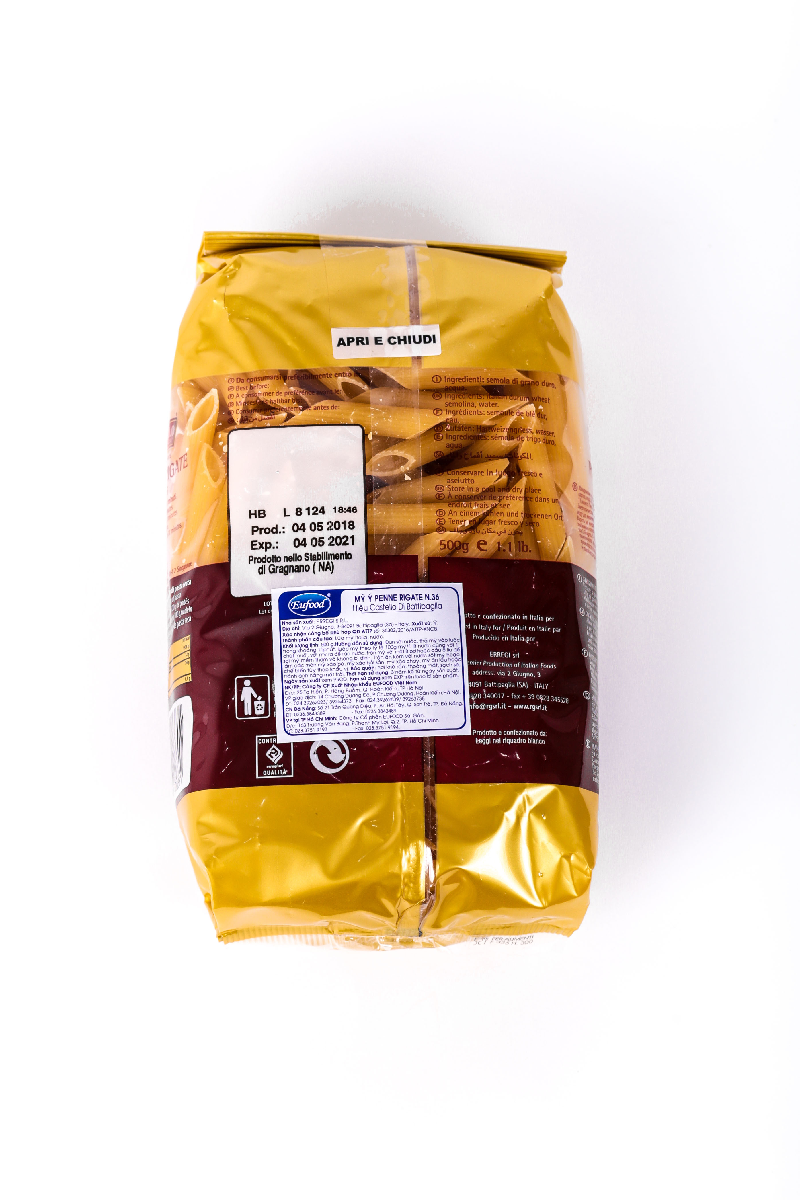 - Thành phần: Bột lúa mỳ cứng Semolina