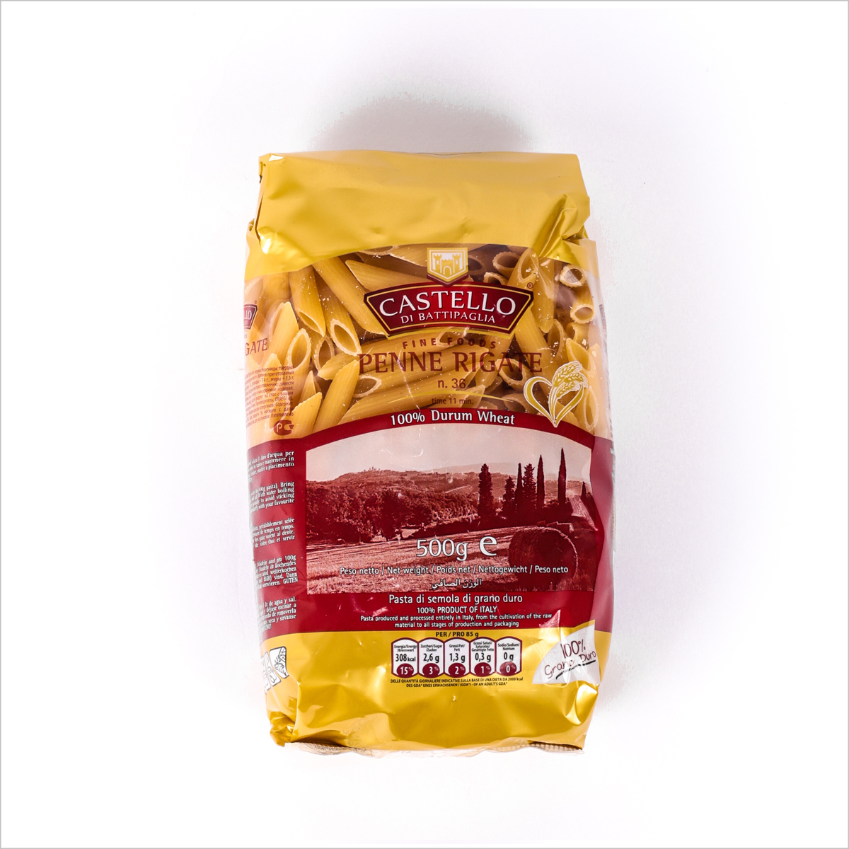 Mì Ý số 36 Penne Rigate Castello là sản phẩm mì ống tròn khác với những loại mì thông thường. Với sản phẩm này bạn có thể chế biến thành nhiều món ăn khác nhau tùy sở thích như: mì Ý trộn, mì Ý xào, nấu súp… Mì Ý số 36 Penne Rigate Castello có hương vị thơm ngon của những nguyên liệu tự nhiên. Sợi mì dai, giòn, tăng vị đậm đà hơn khi sử dụng cùng các loại nước sốt: cà chua, nước thịt hầm...