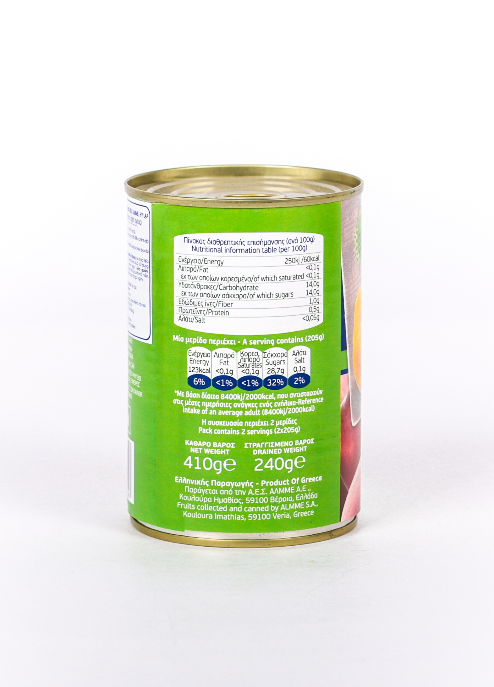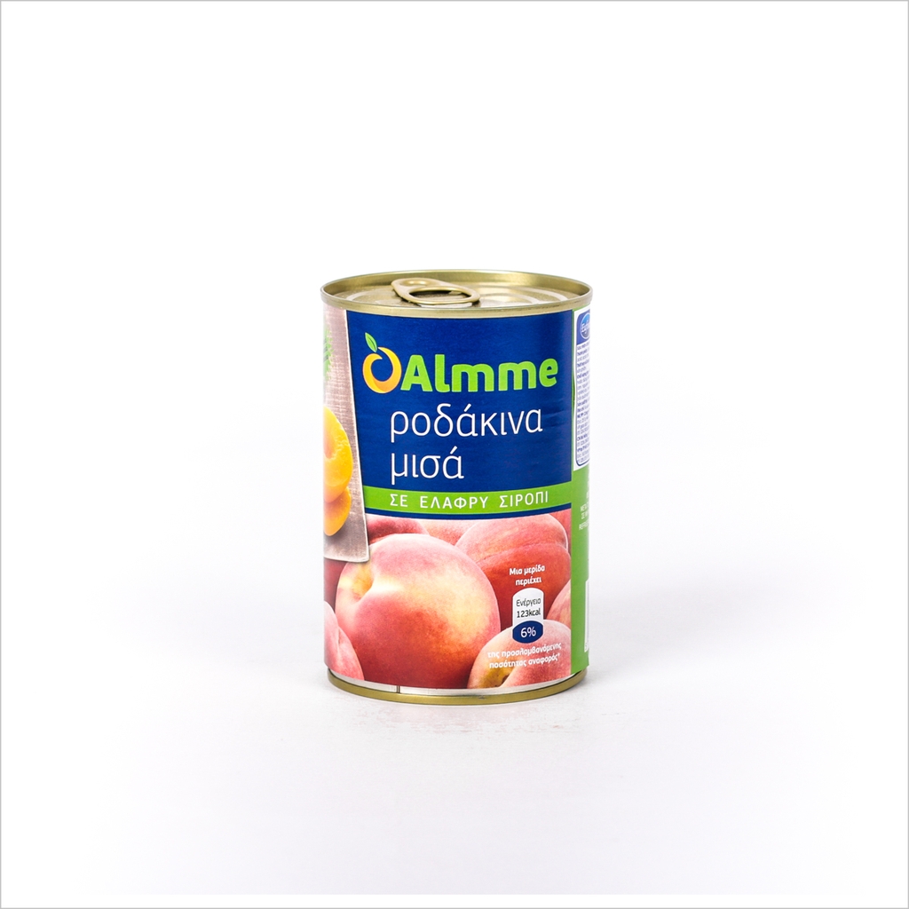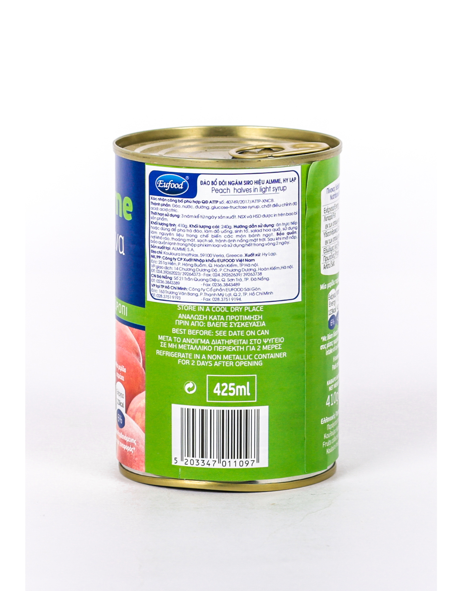 Đào bổ đôi ngâm siro thương hiệu cao cấp Almme Hy Lạp, thành phần không thể thiếu trong những tách trà thanh mát.