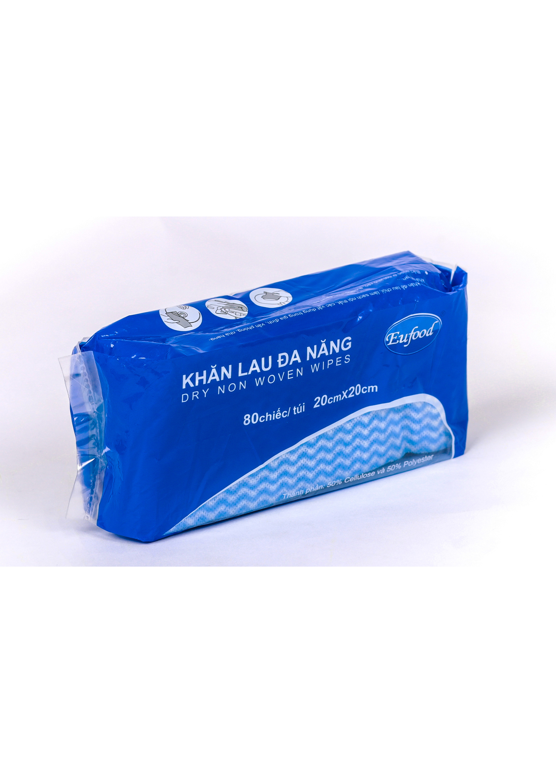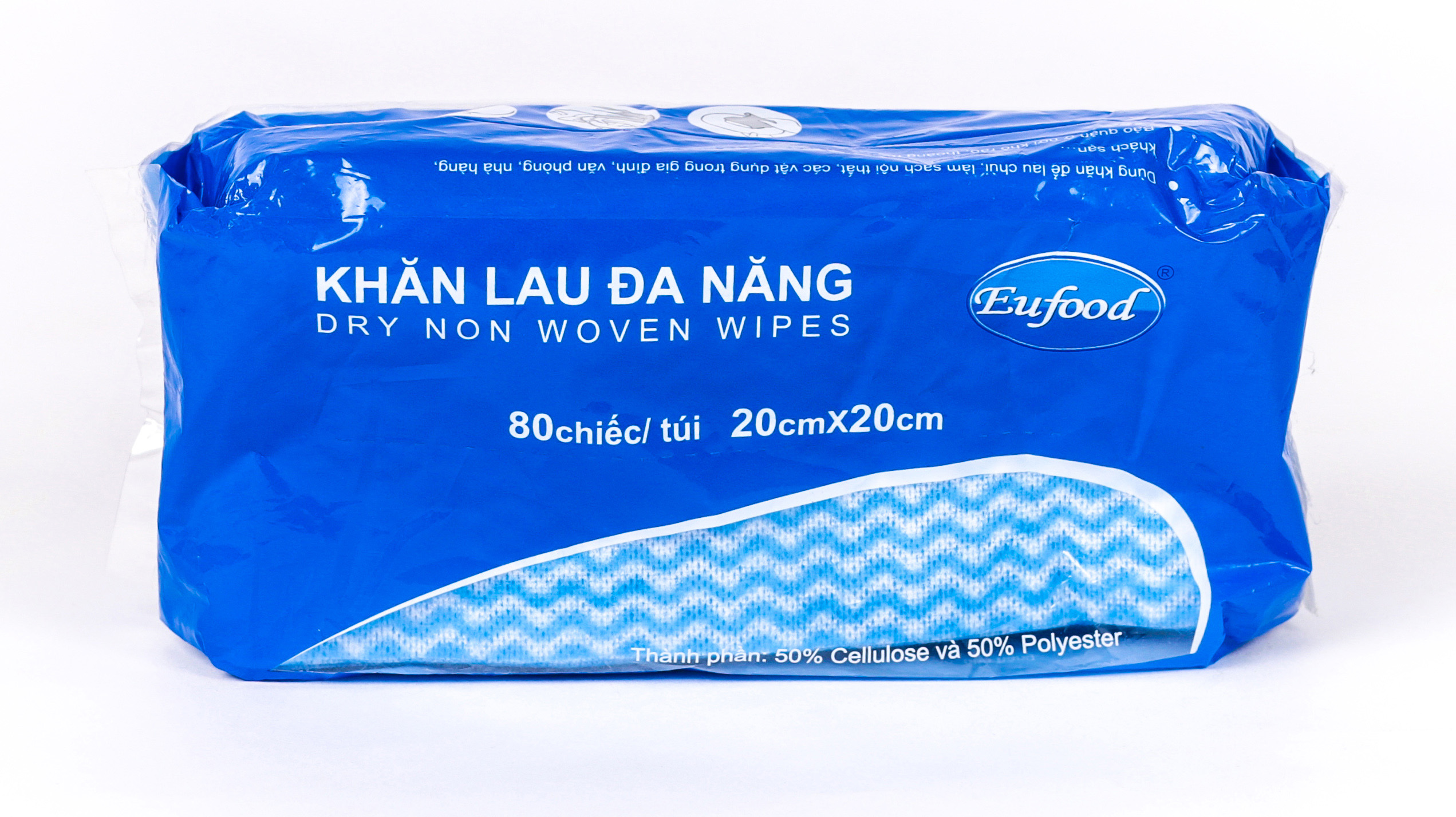 - Túi 80 khăn lau đa năng Eufood được làm từ 70% vải viscose 30% sợi polyester mềm mịn, mang đến khả năng thấm hút nước vượt trội lên đến 20 lần trọng lượng của khăn.