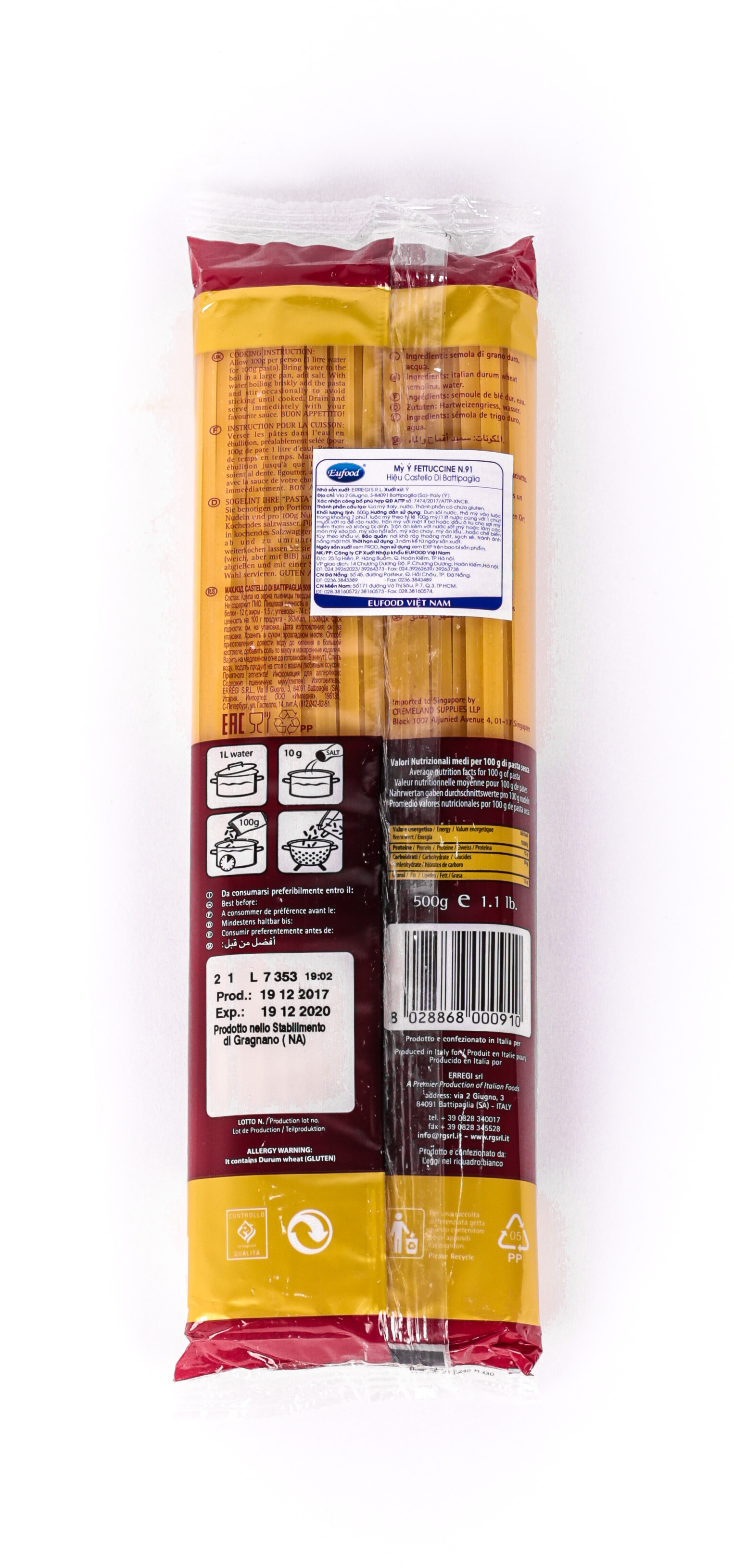 Cách dùng: Luộc sôi theo thời gian được chỉ dẫn trên bao bì (khoảng 6-7p). Cho thêm muối, 2 thìa nhỏ dầu ăn vào nước luộc mỳ, đổ ra ráo nước. Có thể xào, trộn, salat, ăn cùng với nước sốt.
