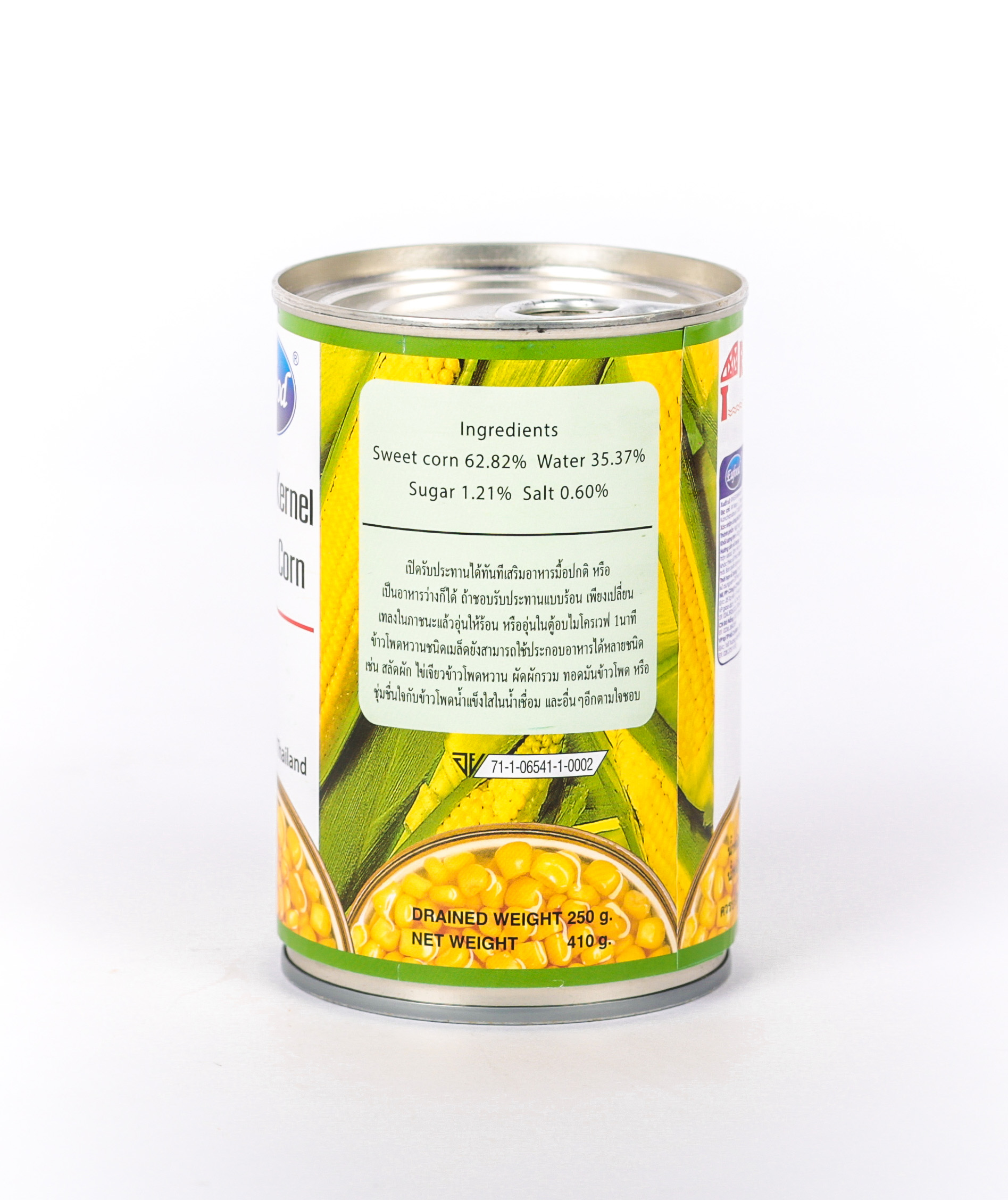 Thành phần nguyên liệu: ngô ngọt 62,8%, nước 35,37%, đường 1.21%, muối 0,6%